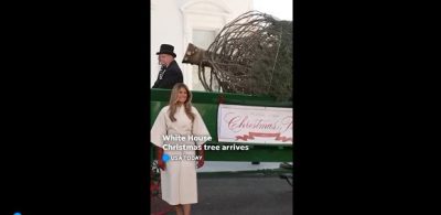 First Lady Melania Trump welcomed the Official 2025 White House Christmas Tree and joined President Trump for the pardoning of Gobble and Waddle in the Rose Garden.
