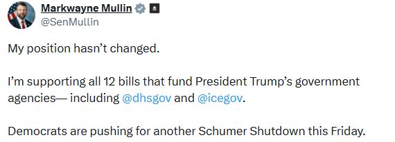 Senator Markwayne Mullin ha inviato un aggiornamento 3 giorni, 10 ore fa