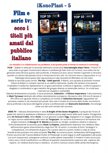 iKonoPlast Magazine numero 77 – In sommario: 4 pagine dedicate al nuovo film di Gabriele Muccino “Le cose non dette”; la top ten di film e serie TV JustWatch nello streaming sulle piattaforme. Tutti i numeri della rivista gratis su http://www.ikonoplast.com; canale Youtube ikonoplast – @ikonoplast2935