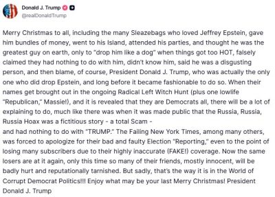 Now 1,000,000 more pages on Epstein are found. DOJ is being forced to spend all of its time on this Democrat inspired Hoax. When do they say NO MORE, and work on Election Fraud etc. The Dems are the ones who worked with Epstein, not the Republicans. Release all of their names, embarrass them, and get back to…[Leggi tutto] -