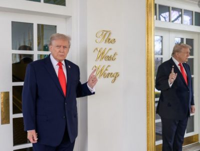 The new mirror and bronze lettering at the door to The West Wing, along The Presidential Walk of Fame! -