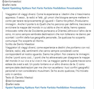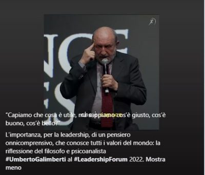 Tanto per essere chiaro…a proposito di Arte… aggiungo vorrei che i miei amici Artisti riflettessero su questa analisi di Galimberti. Aggiungo che queste erano le cose che SEMPRE diceva il compianto Maestro Ennio Calabria.