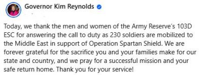 Thank you, Senator Joni Ernst, for your unwavering commitment to serving our state. It has been an incredible honor to work alongside you, and we are so grateful for everything you have accomplished for Iowans. Kevin and I wish you and your family the best in this next chapter of your lives. -