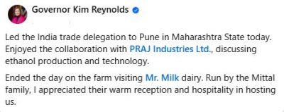Today, Iowa and Maharashtra became partner states, building on a rich history of Iowa-India cooperation. I want to thank CMOMaharashtra and the people of Maharashtra for their vision and commitment to this partnership.I can’t wait to see all the good that comes as we develop lasting ties between our universities, research centers, businesses, a…[Leggi tutto]
