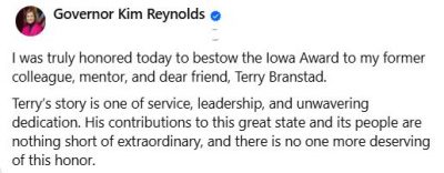 Terry, thank you for everything you have done for Iowa and our country. Your impact has been truly incredible! -