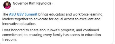 @KimReynoldsIAProud that Iowa has led the way on school choice! Families want options, and Iowa delivered—helping drive a nationwide push for education freedom.