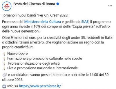 Tornano i nuovi bandi “Per Chi Crea” 2025!
