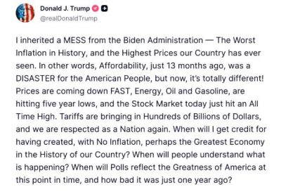 Under President Trump’s tariff-driven “America First” trade agenda, the U.S. trade deficit has narrowed to its smallest level since 2020 — with exports rising, imports falling, and a notably smaller deficit with China — which officials say demonstrates the effective…[Leggi tutto]