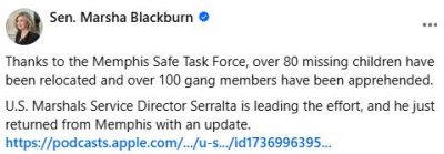 Sen. Marsha Blackburn ha inviato un aggiornamento 3 ore, 41 minuti fa