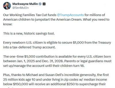 Senator Markwayne Mullin ha inviato un aggiornamento 1 mese, 1 settimana fa