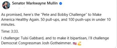 Senator Markwayne Mullin ha inviato un aggiornamento 2 mesi fa