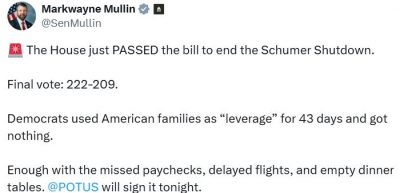 Senator Markwayne Mullin ha inviato un aggiornamento 3 giorni, 16 ore fa
