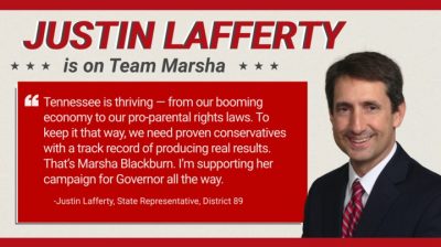Grateful to be endorsed by State Rep. Justin Lafferty! He shares the belief that Tennessee can be America’s conservative leader, and together, we will make that a reality!