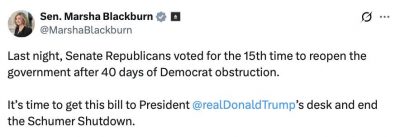 Sen. Marsha Blackburn ha inviato un aggiornamento 5 giorni, 8 ore fa