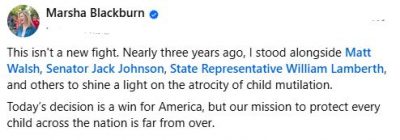 Sen. Marsha Blackburn ha inviato un aggiornamento 3 mesi, 3 settimane fa