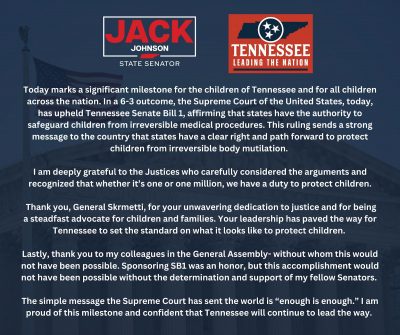 Thank you for your dedication to protecting our children, Senator Jack Johnson, State Representative William Lamberth, and Tennessee Attorney General.