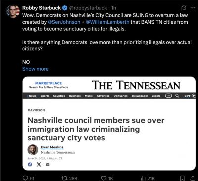 No sanctuary cities in Tennessee and no sanctuary politicians in Tennessee either! -