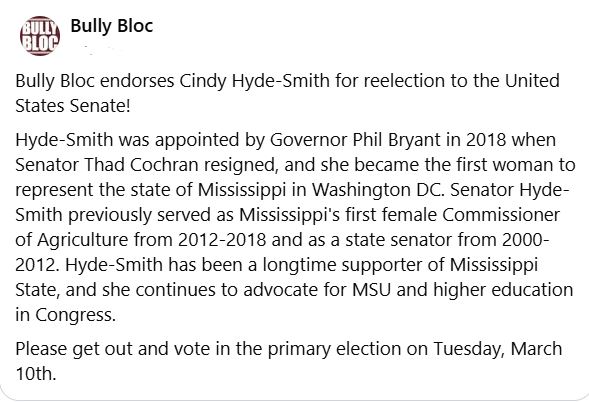 Cindy Hyde-Smith ha inviato un aggiornamento 8 ore, 53 minuti fa