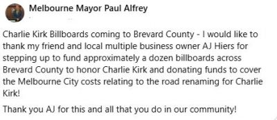 Thank you to the Youth Republicans of Brevard for organizing an incredible candlelight vigil for Charlie Kirk last night in Indialantic. This is the type of unifying, faith-based community organizing that Charlie carried out every day of his life. Thank you everyone who came to pay tribute to such a remarkable man.