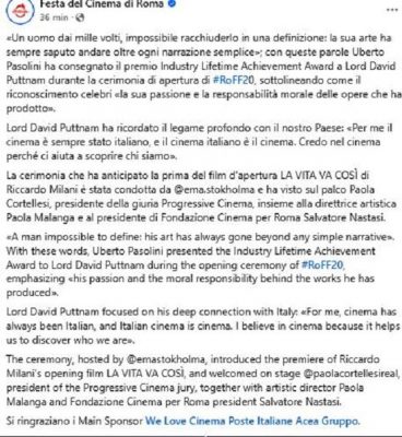 Il #Day2 di #RoFF20 vi aspetta con il Paso Doble tra Lord David Puttnam e Uberto Pasolini, e poi il Premio Progressive Cinema a Nia DaCosta, le anteprime di “Breve storia d’amore” (GP) e “Per te” (GP) e poi documentari, il cinema che incontra l’arte e anche la musica!