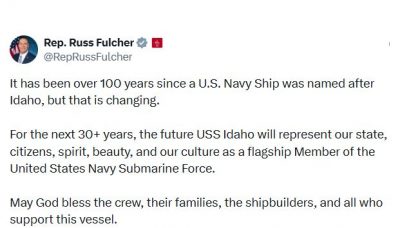 Rep. Russ Fulcher ha inviato un aggiornamento 1 giorno, 22 ore fa