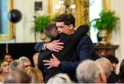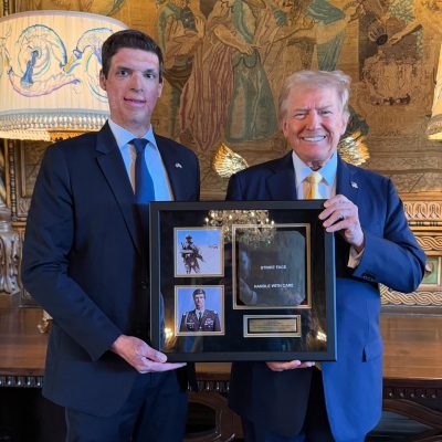 Today, I had the honor of presenting President @realDonaldTrump with a piece of the body armor I wore in Afghanistan when an IED nearly took my life. Just as that armor shielded me in battle, President Trump shields America from harm, fighting for our freedom, prosperity, and future. 🇺🇸 -