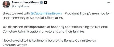 @CaptainSamBrownThank you Chairman@JerryMoran for being a steadfast supporter of our nation’s veterans and their families. 🇺🇸