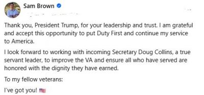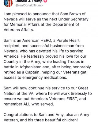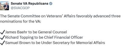 @CaptainSamBrownHonored to have the trust and support of the Senate Committee on Veterans’ Affairs.