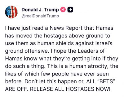 American hostages remain captive in Gaza and Hamas continues to use them, as well as Palestinian civilians, as human shields. ALL nations must pressure Hamas to release all remaining hostages without delay. -