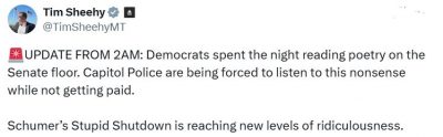 Shutdown Schumer and the Democrats are choosing historic obstruction and robbing American families of a functioning government. Republicans are the party of common sense and results, and we will continue to deliver on the America First agenda. https://www.facebook.com/reel/776993191976810 -