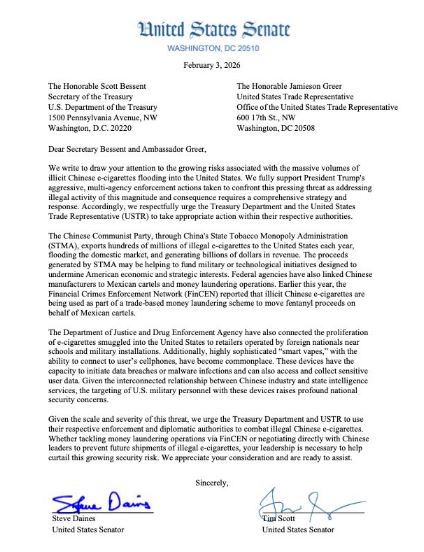 @TimSheehyMTIllicit Chinese e-cigarettes that flood into our country are funding the CCP, fueling cartel activity, and threatening the health of countless Americans.