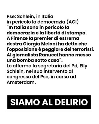 Siamo al puro delirio. Vergogna, Elly Schlein, che vai in giro per il mondo a diffondere falsità e gettare ombre inaccettabili sulla Nazione che, da parlamentare della Repubblica italiana e leader di partito, dovresti rappresentare e aiutare.