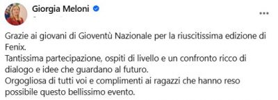 Amici di Giorgia Meloni ha inviato un aggiornamento 3 giorni, 21 ore fa